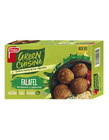 Garbanzos cocidos 62%, cebolla frita (cebolla, aceite de nabina), sémola de TRIGO duro, aceite de nabina, perejil, cebolla, ajo, gasificante (difosfato disódico, bicarbonato de sodio, almidón de maíz, carbonato de calcio), sal, comino, estabilizante (metilcelulosa), aroma natural. TRIGO. Puede contener: APIO